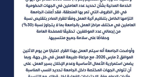 قامت مدير الجامعة أ.د.دينا الميلم بزيارة تفقدية إلى سكن الطلبة (بنين) وسكن الطالبات الأجانب في الحرم الجامعي في مدينة صباح السالم الجامعية، للاطمئنان على أوضاعهم والوقوف على..