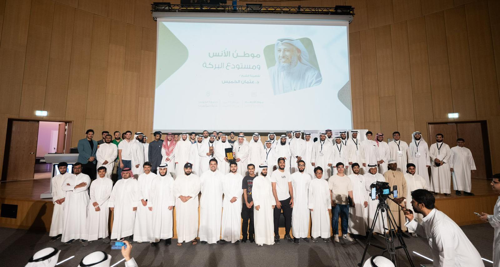 وفي الختام كرمت الجامعة ممثلة في عمادة شؤون الطلبة د.عثمان الخميس على دوره الكبير في إثراء العلم والمعرفة، تقديرًا لإسهاماته في تعزيز الوعي الديني والعلمي، بالإضافة إلى تكريم الجهات الراعية والمشاركة في هذه المحاضرة الدينية.