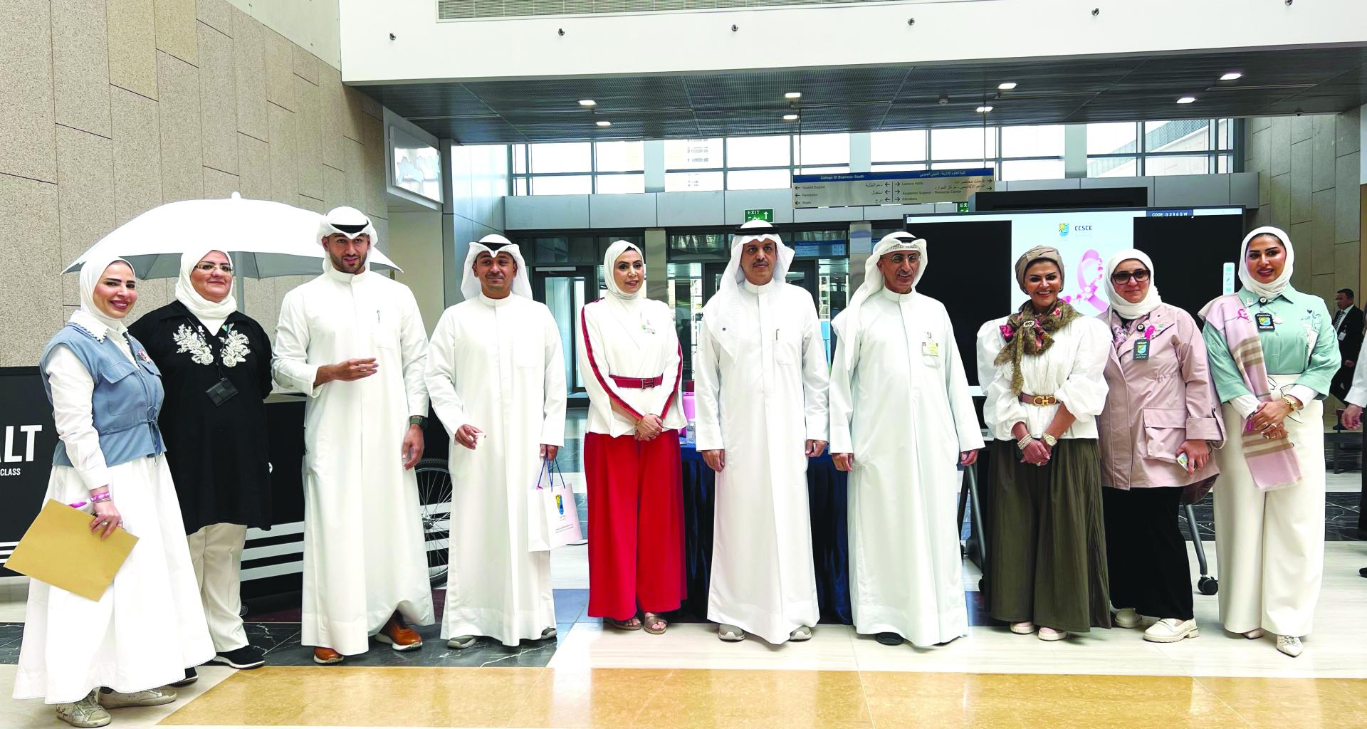نظمت الجامعة ممثلة بقسم البحوث والدراسات والتوعية المجتمعية، وبالتعاون مع قسم الإدارة العامة بكلية العلوم الإدارية ومركز الكويت لمكافحة السرطان بوزارة الصحة الكويتية، الاثنين الماضي، الحملة التوعوية (أكتوبر الوردي)، في رحاب مدينة صباح السالم الجامعية، وذلك بحضور نخبة من المختصين بالمجال الطبي وعدد من الأشخاص المتعافين من المرض، وعدد من أعضاء الهيئة الأكاديمية والهيئة الإدارية والطلبة، بمشاركة مختلف جهات الدولة من القطاعين الحكومي والخاص ومؤسسات المجتمع المدني.