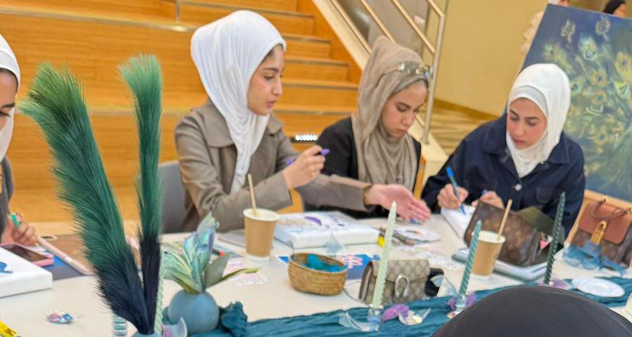 وتميّزت الورشة بروح إبداعية مفعمة بالحيوية، وجاءت لأتاحت الفرصة للطالبات في استكشاف مهاراتهن في مزج الألوان وتناغمها، مما أظهر مواهب فنية لافتة وأسهم في تعزيز الذائقة الجمالية لدى المشاركات.