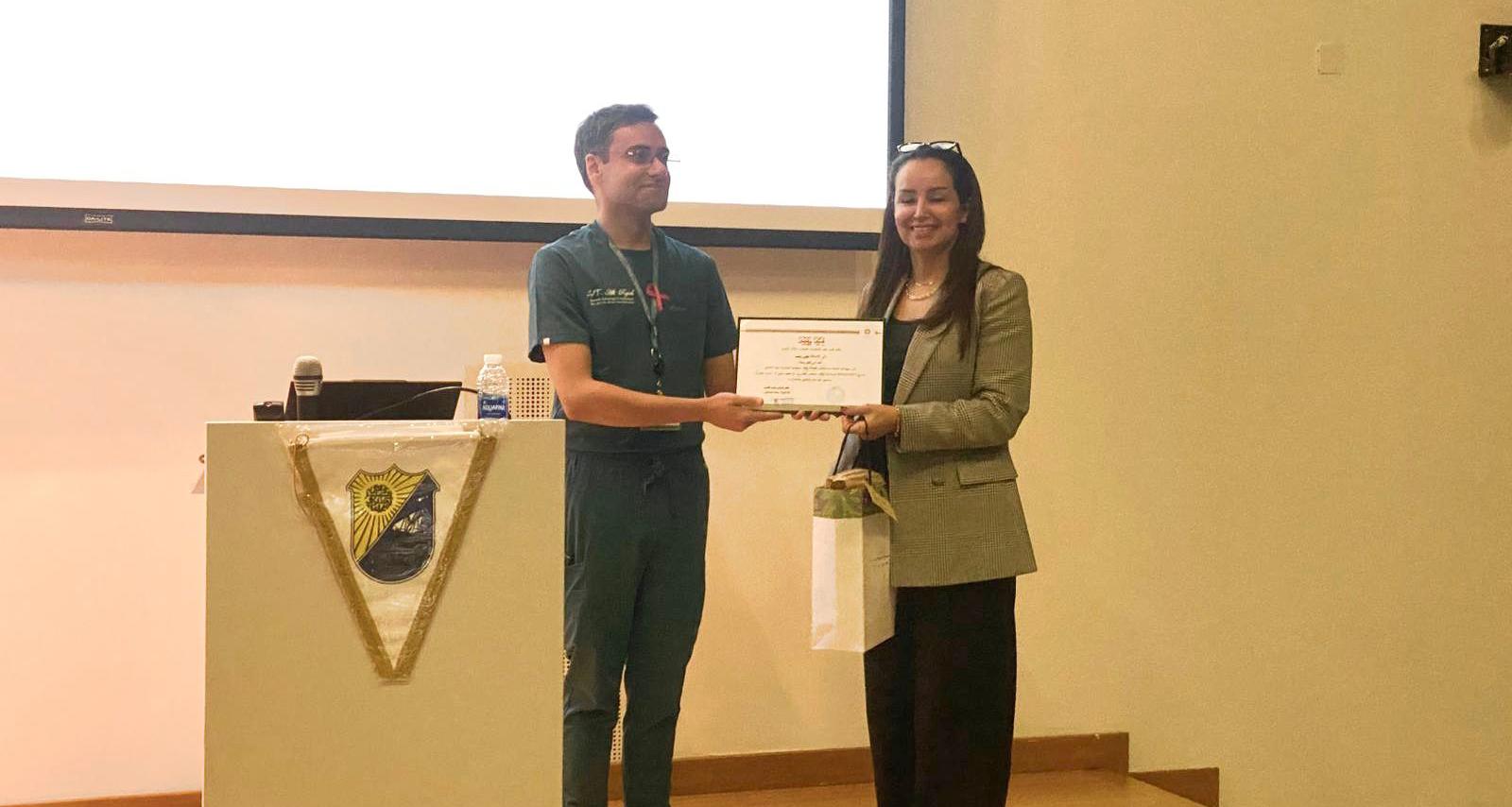 وفي ختام الفعالية، كرمت د.مرام الخالدي الاختصاصي علي رجب تقديرًا لمساهمته القيّمة في إثراء الطلبة بالمعلومات.