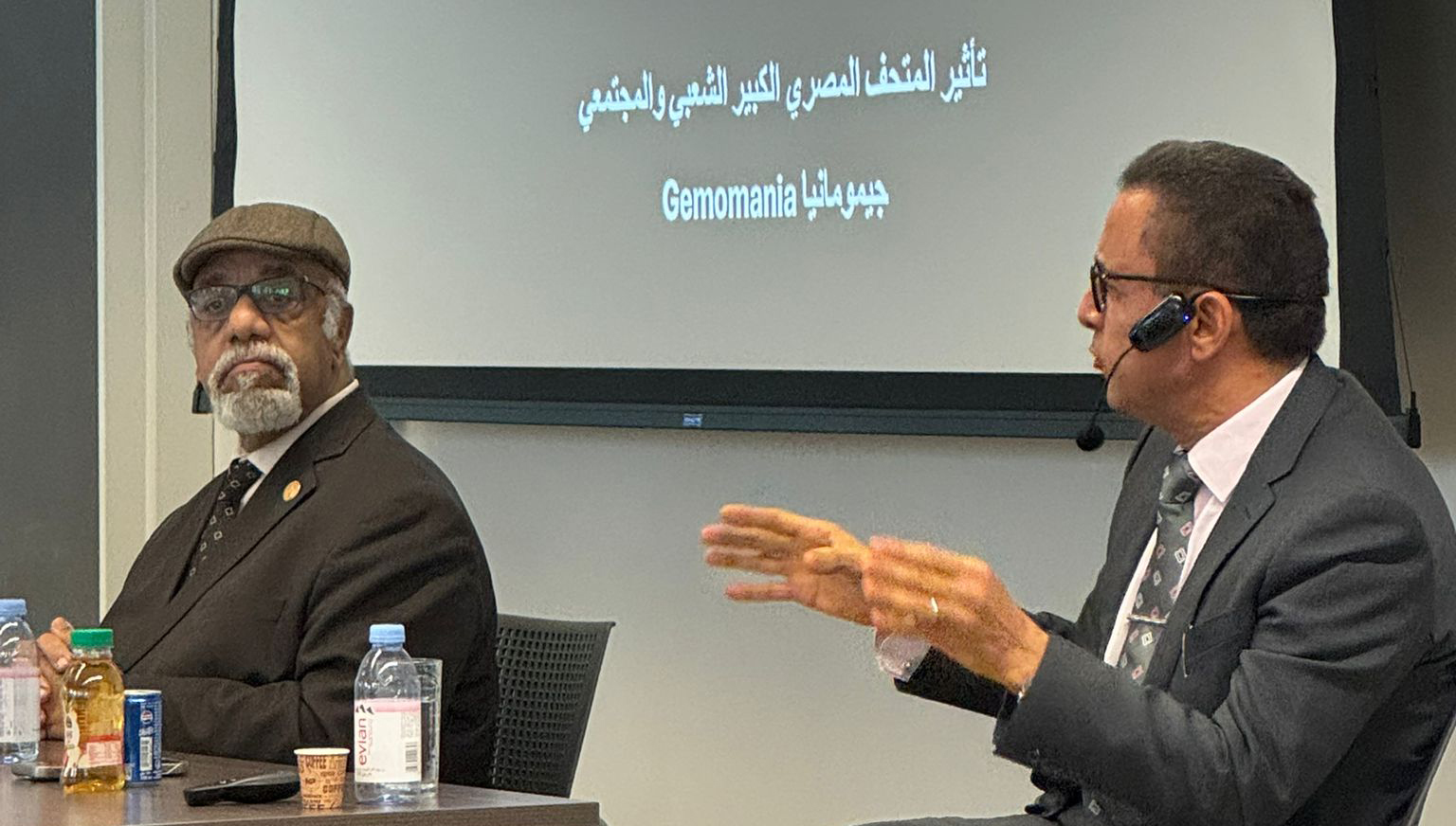 وبدوره بيّن أ.د.محفوظ مكوّنات المتحف ومميزاته، منوهاً بأن هذا الصرح يُعد أعجوبة في التصميم ونموذجًا وأيقونة للمتاحف المبهرة، وتبلغ مساحته 600 ألف متر مربع ويتمتع بإطلالة ساحرة على أهرامات الجيزة التاريخية، وأشار إلى أن المتحف يضم 12 قاعة تعرض الحضارة المصرية في محور رأسي موضوعي يرتبط بالمجتمع والملكية والمعتقدات الدينية والفترات التاريخية من عصور ما قبل التاريخ وصولاً إلى العصر اليوناني والروماني.
