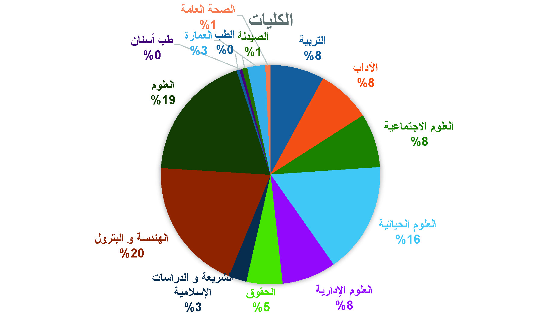 يوضح الشكل التالي نسب الطلبة المقبولين في الكليات المختلفة الذين شاركوا في اللقاء التنويري، ويوضح أن أعلى نسبة حضور كانت من كلية الهندسة و البترول بنسبة (20%) تليها كلية العلوم بنسبة (19%) ثم كلية العلوم الحياتية بنسبة (16%)، هذا يعكس أن التخصصات العلمية والهندسية شكلت النسبة الأكبر من المقبولين الحاضرين، كما يلاحظ حضور ملحوظ من كلية العلوم الاجتماعية (9%) والعلوم الإدارية (9%) والتربية (8%) ما يدل على تنوع نسبي في الخلفيات الأكاديمية، بينما انخفضت نسبة حضور الطلبة المقبولين من الكليات الأخرى مثل الحقوق والشريعة والدراسات الإسلامية (3%)، و التمريض (2%)، في حين كان حضور المقبولين من كليات مثل الصحة العامة وطب الأسنان والعلوم الطبية المساعدة والصيدلة ضعيفا جدا لم يتجاوز (1%).