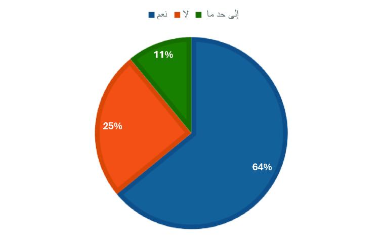 حيث أجاب (64%) ب نعم، بينما (25%) أجابوا ب لا، و(11%) قالوا إلى حد ما، هذا يشير إلى أن الوعي في هذا الجانب مرتفع نسبيا وغالبية الطلبة مدركون للتباينات بين التخصصات.