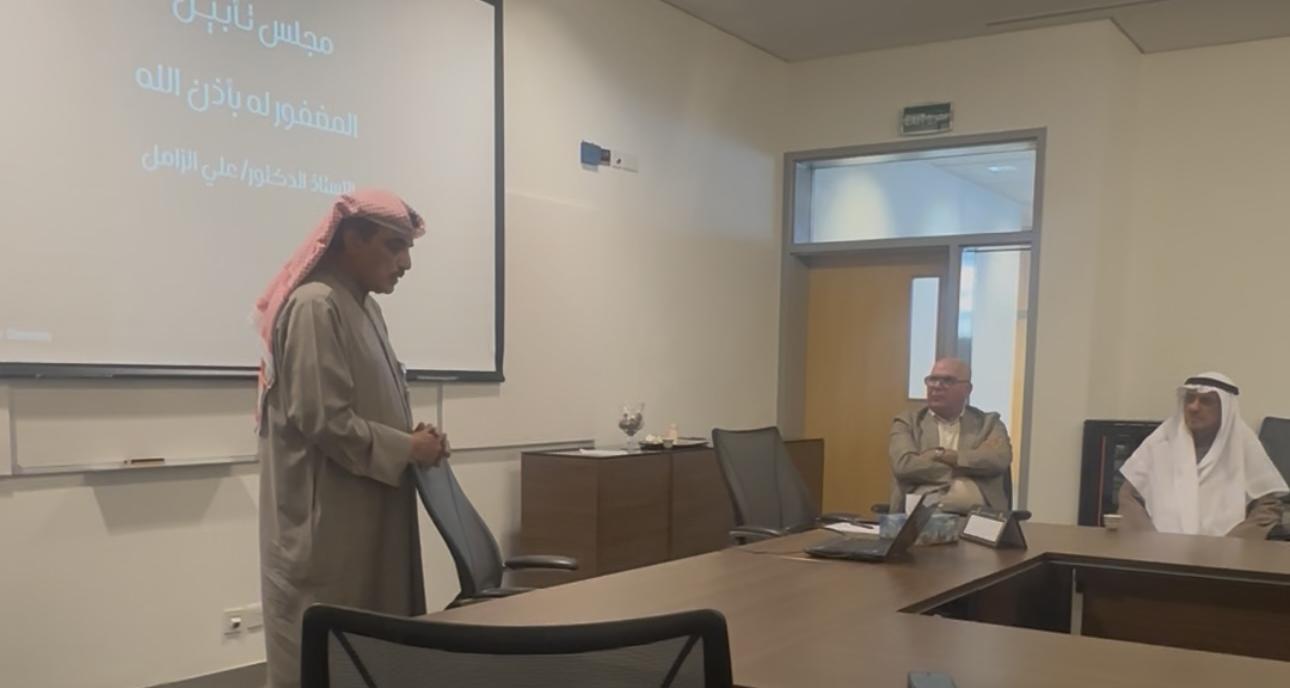 أقام قسم الرياضيات في كلية العلوم باشراف د.مريم الكندري القائم بأعمال رئيس القسم ً، مجلس عزاء وتأبين لفقيده الغالي أ.د.علي الزامل (رحمه الله)، بحضور عميد كلية العلوم أ.د.حيدر بهبهاني، وعدد من أعضاء هيئة التدريس في كلية العلوم وبحضور أخ المرحوم محمد الزامل .