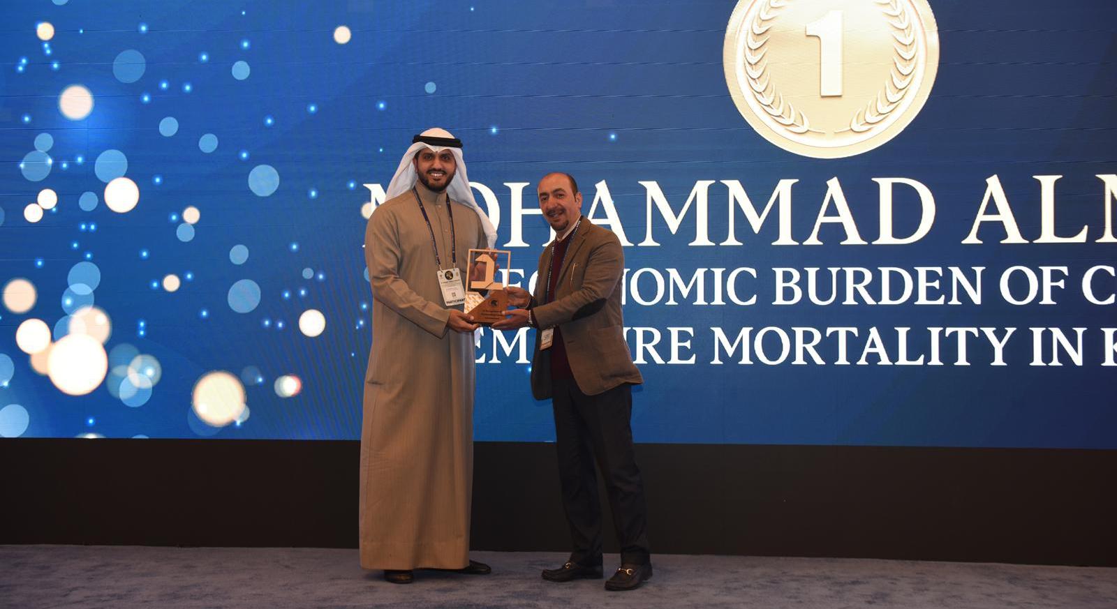 هذا وفاز بالمركز الأول المدرس المساعد محمد المري عن بحثه بعنوان «العبء الاقتصادي لكوفيد-19 للوفيات المبكرة في الكويت»، فيما تناصف المركزين الثاني والثالث كلٌّ من الأستاذ المساعد د. صالح السرحان و محمد المري ببحثين مشتركين بعنوان «العوامل المتنبئة بتكاليف دخول المستشفى بسبب كوفيد-19 في الكويت: دلائل من البيانات الفعلية»، و«هل المناطق متساوية في الشدة الاقتصادية؟ تحليل زماني ومكاني لعبء الحجر والخسائر الاقتصادية في الكويت».