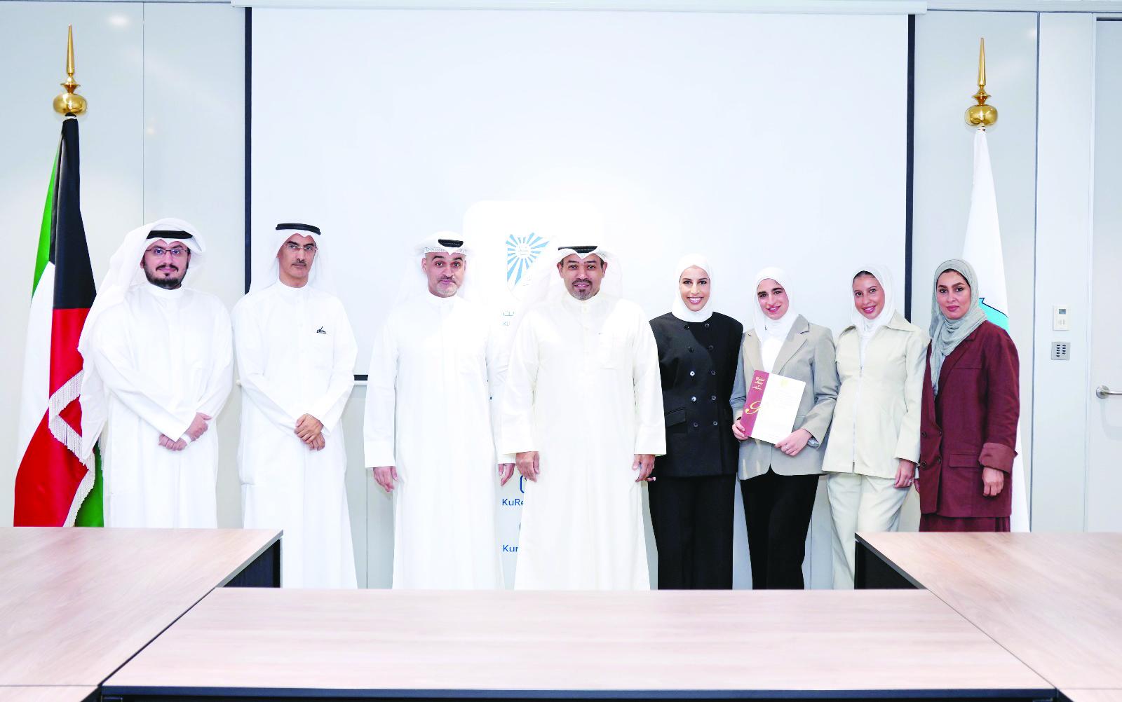 أ.د. خالد الهزاع، من قسم الهندسة الميكانيكية بكلية الهندسة والبترول، وفريقه البحثي المكون من م. شيخة شمس الدين، وم. دلال العودة، وم. سلوى العازمي، وم. حياة البسام عن اختراعهم UBoatIt وهو نظام آلي لركن السفن والقوارب.