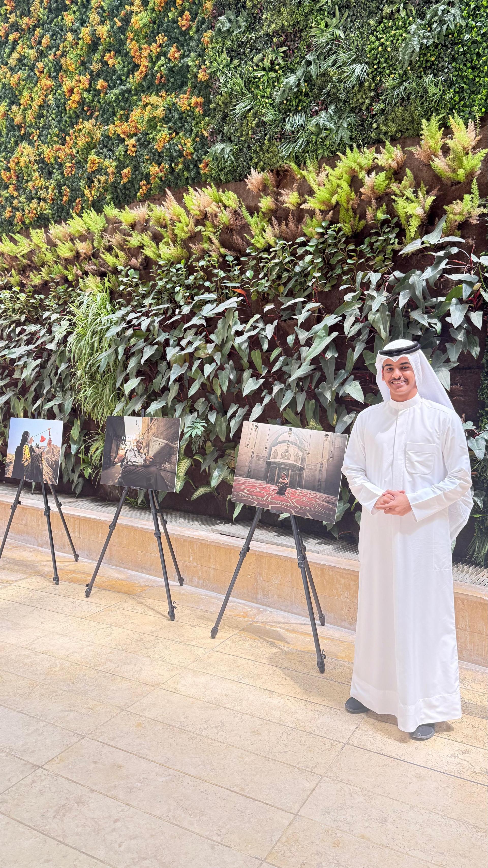 وقد أبدى الزوار إعجابهم بجودة الصور واختيار الزوايا والإضاءة، مما يعكس إبداع الطالب وقدرته على نقل المشاعر والمواقف من خلال فن التصوير الفوتوغرافي، وقد تم تكريمه من قبل رئيس القسم الفني الأستاذ بدر المطيري.