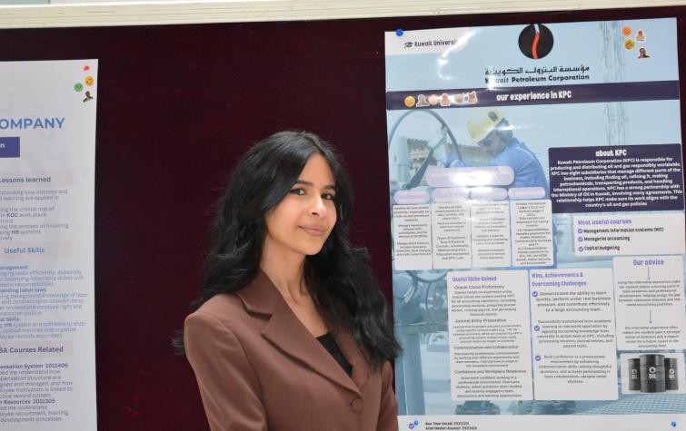نظّم مكتب التدريب الطلابي والخريجين في كلية العلوم الإدارية بجامعة الكويت فعالية “يوم الملصق – Poster Day” لطلبة مقرر التدريب الميداني، للفصل الدراسي الثاني من العام الجامعي 2025/2026، وذلك بحضور القائم بأعمال العميد المساعد للشؤون الطلابية د.أبرار الحسن، ومشرف المكتب د.عبدالله العوضي، إلى جانب نخبة من أعضاء هيئة التدريس.