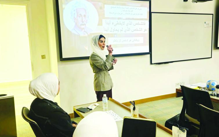 هذا واستضافت الكلية الموجه الفني أ.فاطمة ميرزا من إدارة التعليم الخاص والنوعي بوزارة التربية، حيث قدمت برنامجًا تدريبيًا بعنوان «فن بناء وإدارة العادات»، ركّز على الأسس النفسية والسلوكية لتكوين العادات الإيجابية، وسبل إدارتها وتحفيز استدامتها في البيئة التعليمية والحياة اليومية.