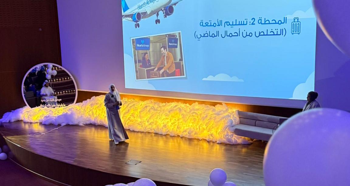 واعتمدت د.الكندري إطارًا مبتكرًا يحاكي رحلة الطائرة بخمس محطات: بدءًا من النية والاستعداد الداخلي، ثم التخلي عن أثقال الماضي، فمرحلة تفتيش القلب، يعقبها التحليق نحو اليقين، وصولًا إلى محطة السكينة. وقدمت للحضور مادة تجمع بين العمق الإيماني والتطبيق العملي، مسلّطة الضوء على قصص إنسانية مؤثرة تعزّز مفهوم الثبات أمام الابتلاءات، ومن أبرزها قصة أحد الأسرى الكويتيين خلال الغزو، التي أبرزت أهمية الثقة واليقين بالله.
