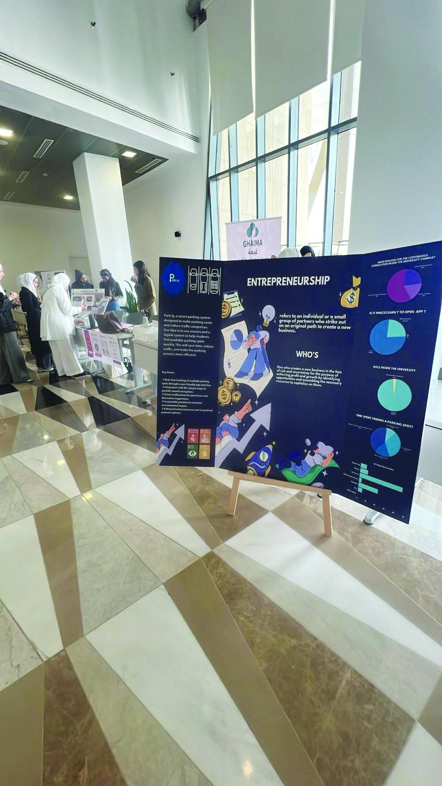 أقيم معرض مشاريع مقرر مادة «مدخل إلى ريادة الأعمال» ومقرر مادة «تطوير القيادة» بإشراف من أستاذ المقررين وعضو هيئة التدريس بقسم علوم المعلومات د. ضاري الحويل، وذلك في 12 مايو الماضي في كلية العلوم الحياتية.
