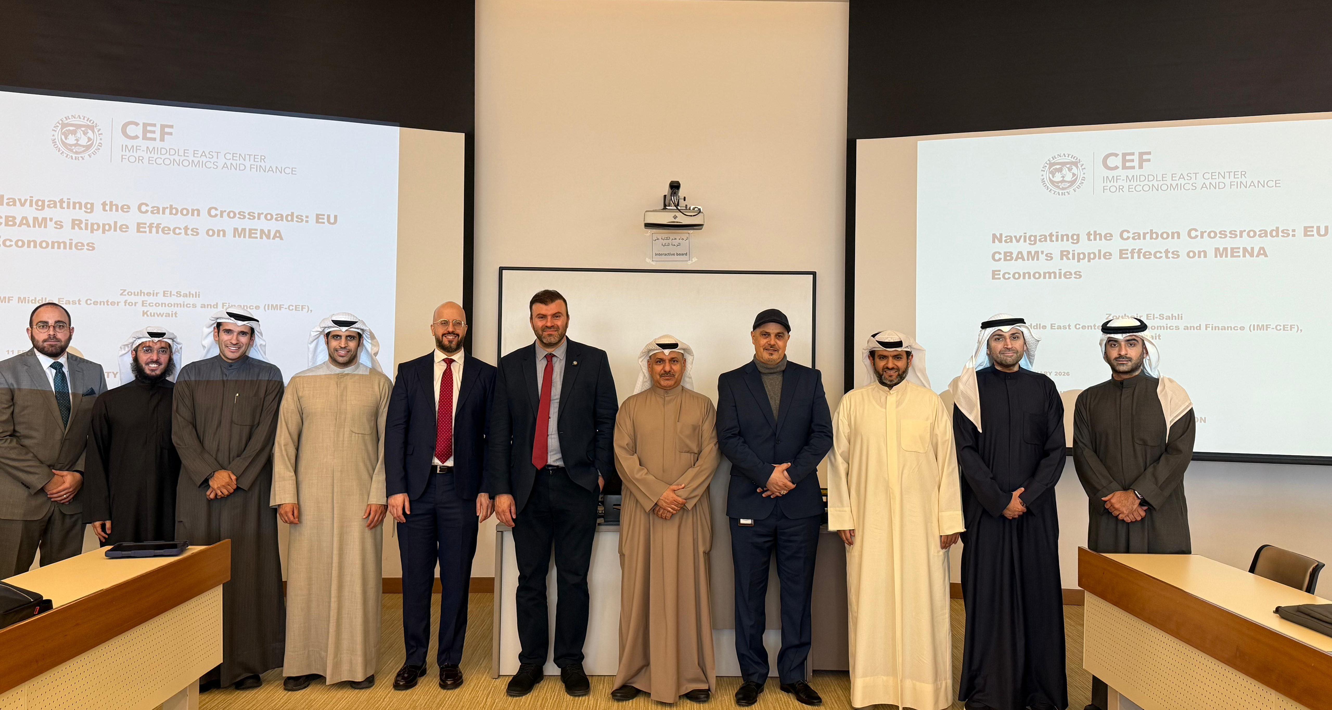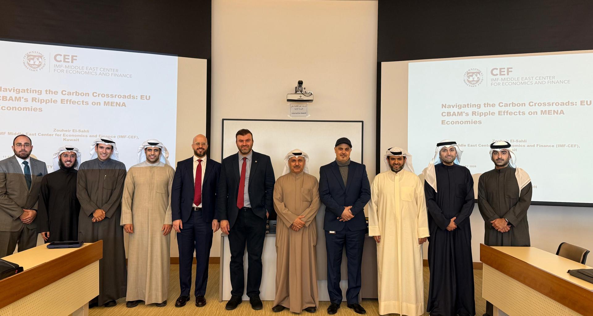 نظّمت اللجنة الثقافية في قسم التمويل والمنشآت المالية بكلية العلوم الإدارية في جامعة الكويت، في 11 فبراير الجاري، ندوة علمية مشتركة بالتعاون مع مركز صندوق النقد الدولي للاقتصاد والتمويل في الشرق الأوسط (IMF-CEF)، بعنوان: “عبور مفترق طرق الكربون: آلية تعديل حدود الكربون في الاتحاد الأوروبي (EU CBAM) وتأثيراتها المتتالية على اقتصادات منطقة الشرق الأوسط وشمال إفريقيا”.