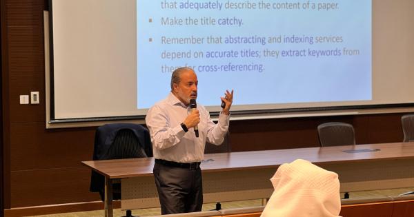 نظم قطاع الأبحاث في الجامعة ، ممثلًا بمكتب التعاون البحثي الخارجي والاستشارات، الثلاثاء الماضي ورشة عمل بعنوان «من المسودة إلى النشر في مجلة عالية التأثير»، والمخصصة لأعضاء الهيئة..
