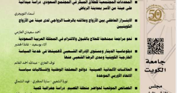 صدر العدد الجديد (الرابع لعدد يونيو) 2025 – الحولية الخامسة والأربعون من حوليات الآداب والعلوم الاجتماعية، التي ترأس تحريرها أ.د.تغريد القدسي متضمنا خمس رسائل، وهي: الرسالة 667..